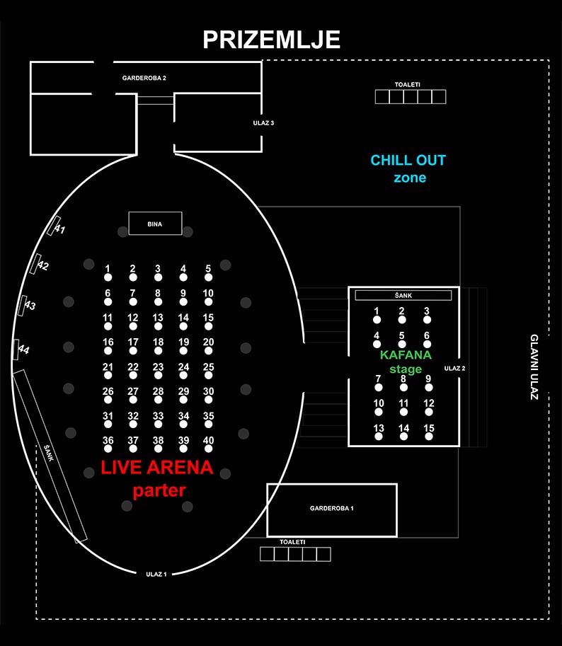Jedina stvar na koju moramo da upozorimo je to da rezervacije važe do 22h samim tim čim se udaljite od tog stola neko će doći na vaše mesto. S obzirom da ima 6 različitih stejdževa verovatno nećete celu noć biti na istom mestu. Naš primarni cilj nije da vam prodamo rezervaciju stola već da vam damo sve potrebne informacije a vaše je kako ćete se organizovati.